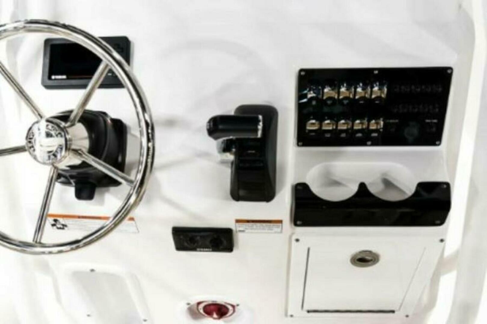 - White Yamaha F150 Four Stroke w/ Stainless Steel Prop, Fuel/Water Separator, Group 24 Battery & Box (2), Digital Tach (w/ Engine Trim, Hours, Trip & Warning Lights), Digital Speedo (w/ Fuel Level, Trip, Time, Volts & Low Fuel/Volt Alarms)